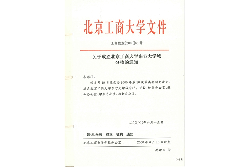 2000年5月19日,學(xué)校黨委常委決定設(shè)立廊坊分校組織機(jī)構(gòu)。7月中旬,學(xué)校決定成立廊坊“東方大學(xué)城”分校。