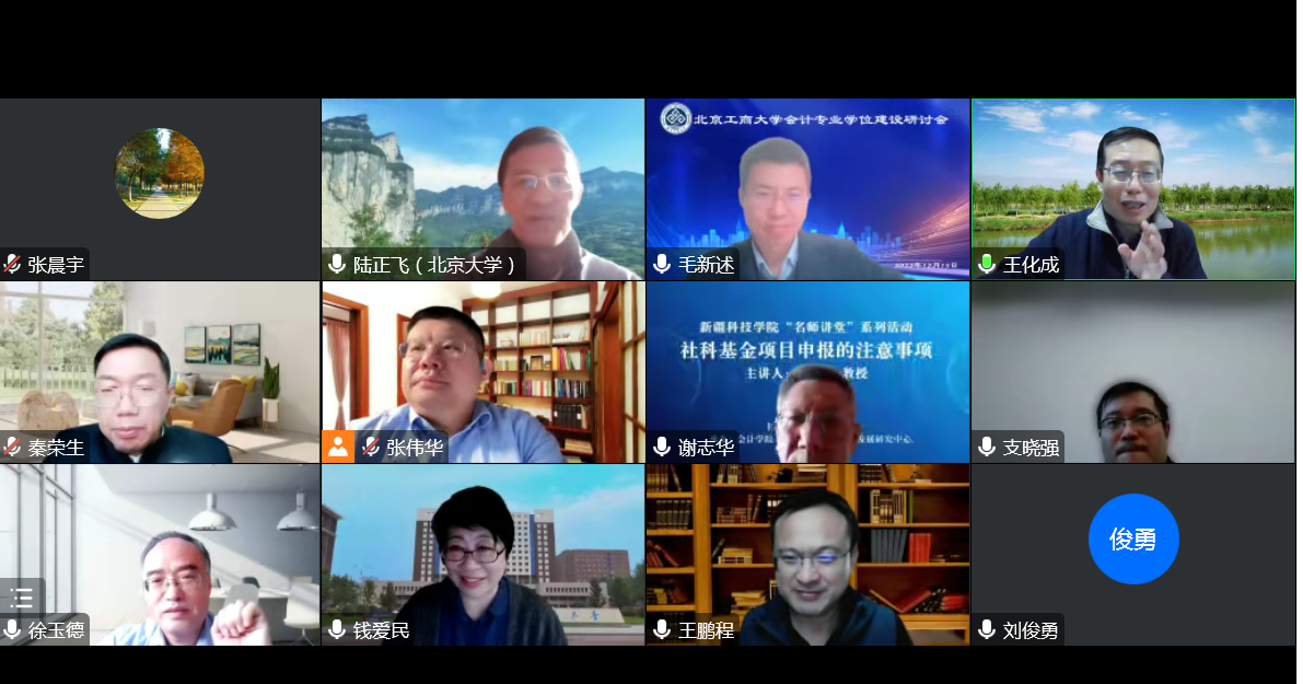 為進(jìn)一步推動(dòng)會(huì)計(jì)學(xué)科建設(shè)發(fā)展,提升會(huì)計(jì)專(zhuān)業(yè)學(xué)位人才培養(yǎng)質(zhì)量,商學(xué)院于12月15日在線(xiàn)組織召開(kāi)會(huì)計(jì)專(zhuān)業(yè)學(xué)位建設(shè)研討會(huì),會(huì)議邀請(qǐng)了中國(guó)人民大學(xué)王化成教授、北京大學(xué)陸正飛教授、北京國(guó)家會(huì)計(jì)學(xué)院秦榮生教授、清華大學(xué)肖星教授、中國(guó)人民大學(xué)支曉強(qiáng)教授、中國(guó)財(cái)政科學(xué)研究院徐玉德研究員、中央財(cái)經(jīng)大學(xué)劉俊勇教授、對(duì)外經(jīng)濟(jì)貿(mào)易大學(xué)錢(qián)愛(ài)民教授,我校謝志華教授、王鵬程教授對(duì)會(huì)計(jì)專(zhuān)業(yè)學(xué)位建設(shè)工作進(jìn)行全方位指導(dǎo)。我校副校長(zhǎng)龔六堂教授出席會(huì)議并致辭。會(huì)議由研究生院院長(zhǎng)兼商學(xué)院院長(zhǎng)毛新述教授主持,商學(xué)院副院長(zhǎng)張偉華教授、會(huì)計(jì)系主任張晨宇參會(huì)。